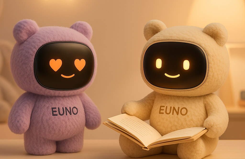 Euno est un robot fictif compagnon intelligent, bienveillant et évolutif, conçu pour accompagner votre enfant de la naissance jusqu’à l’adolescence.